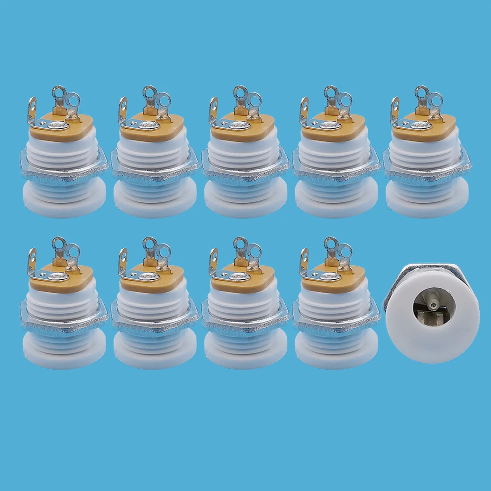 10Pcs White DC-022 5.5*2.1mm DC Socket Connector 5.5 x 2.1mm DC Power Female Jack Round Hole Panel Mounting Connectors with Nut