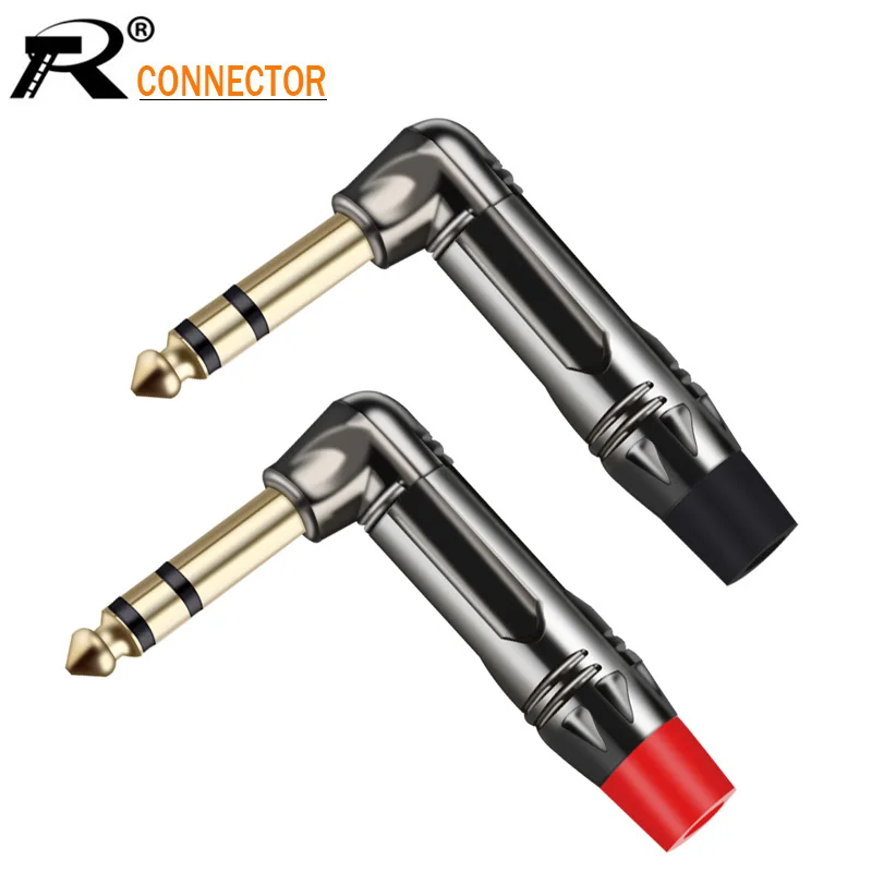 10pcs/5pairs Right angle mono Jack 6.35mm Luxury Gunmetal Microphone Plug Speaker Connector Assembly Black & Red