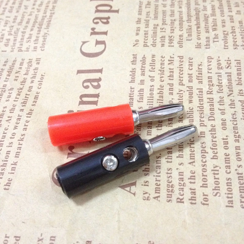 10pcs/lot Banana Plug 4mm Audio Speaker Screw Banana Nickel-plated Plate Plugs Connectors + PVC rubber Black & Red
