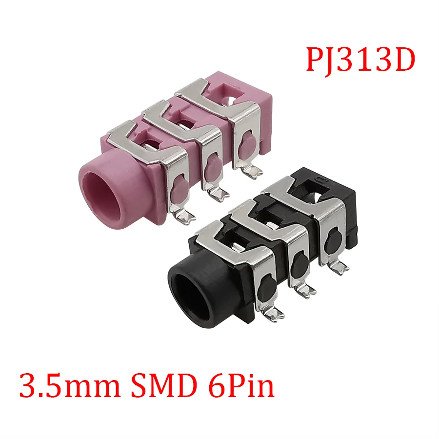 10Pcs/Lot PJ-313D Stereo Headphone Socket PJ313 SMD 6 Pin SMD 3.5mm Female Jack Audio Connector Black and Pink