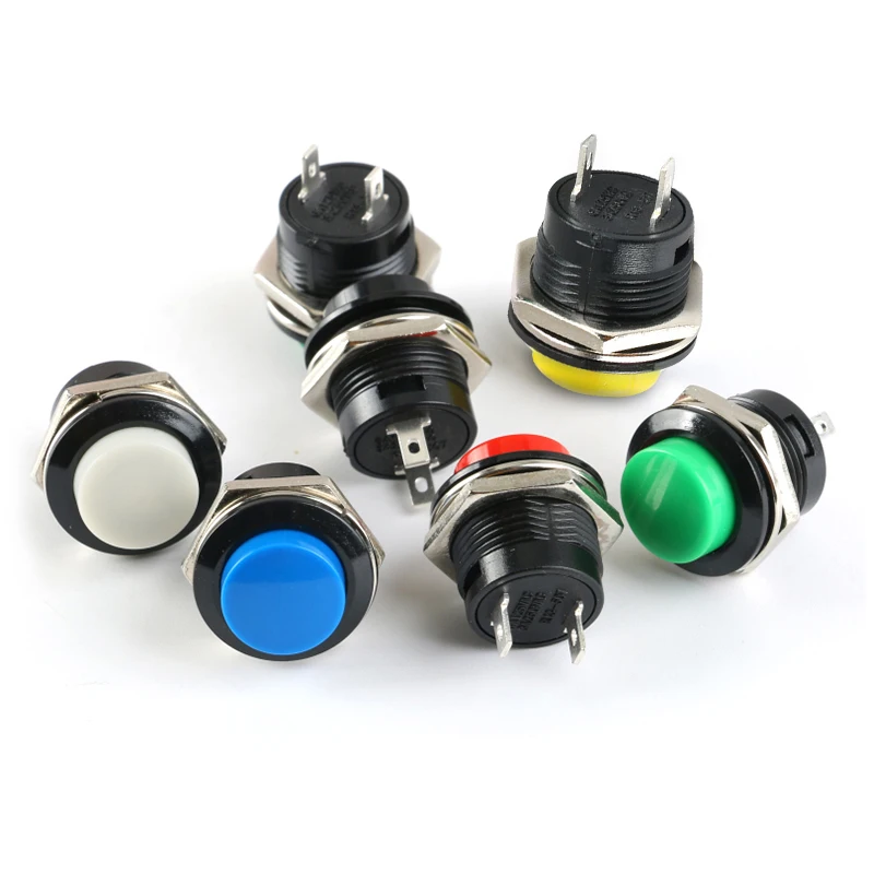 10pcs/lot R13-507 Push Button Switch 16mm 2PIN Plastic Small Button Switches Power Switch 6A125V NON-locking Self-reset