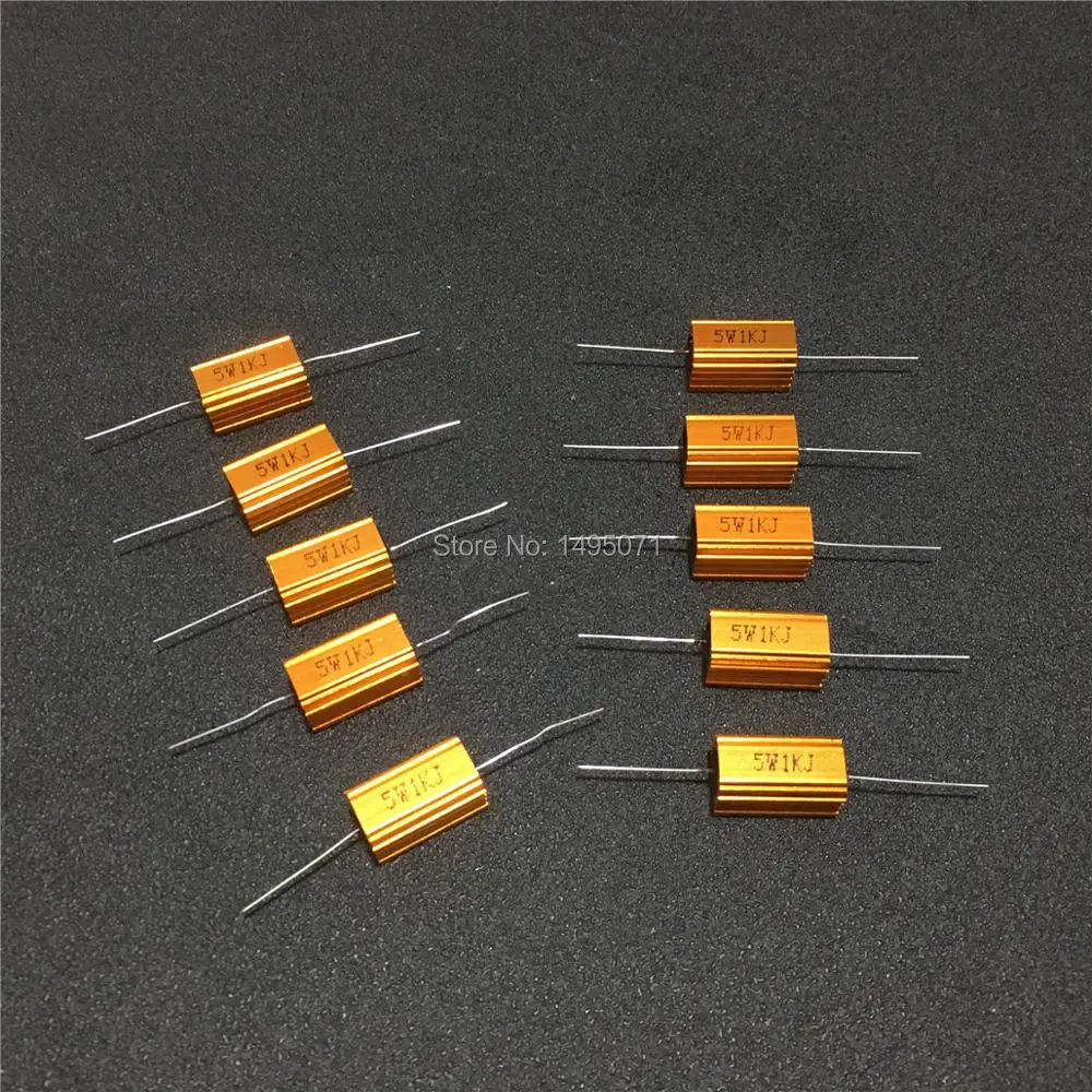 10pcs/Lot RX24 5W 0.1R to 10K Ohm Aluminum Shell Case Power Wirewound Resistor Golden Metal Housing 5% Class J