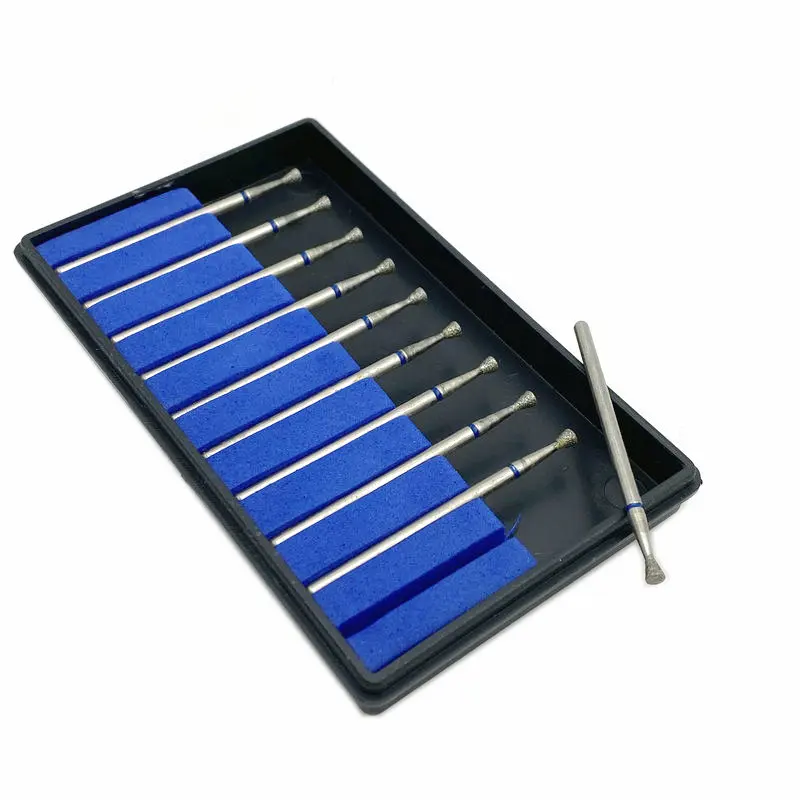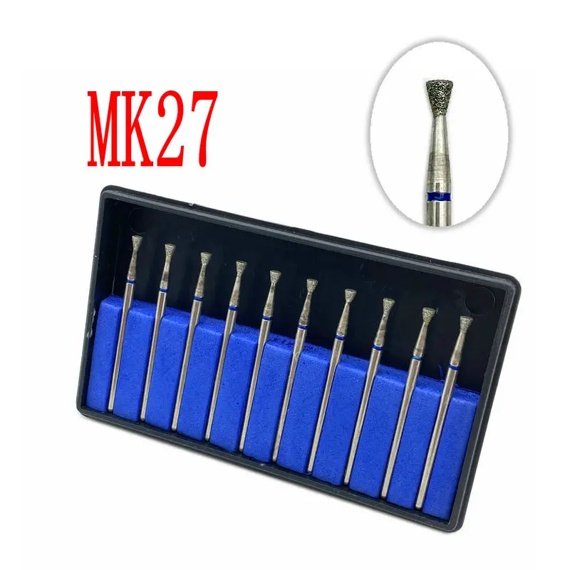 10pcs/set Dental Part Electroplated Diamond Point Polisher Dental Low Speed Handpiece HP Burs Dental Lab Nail Drill Bits MK27