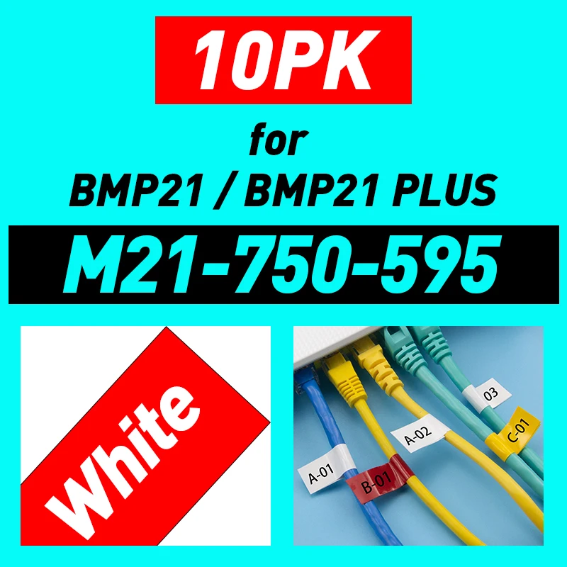 10PK Vinyl Label Tape M21 750595 White on Red Printer Ribbon Replace BMP21 Labeler BMP21 PLUS BMP21 LAB 19.1mm*6.4m Ribbon Tape