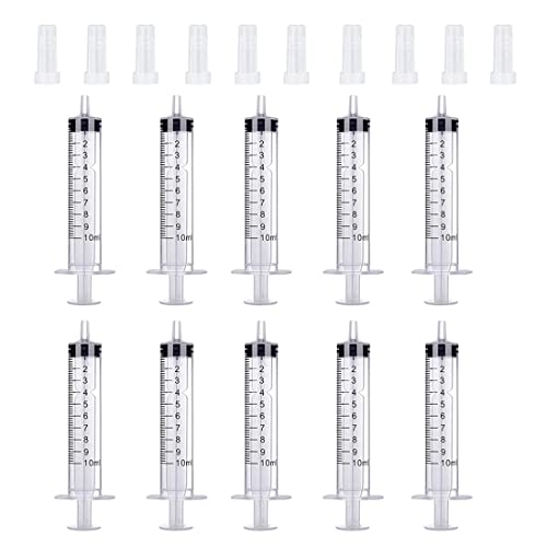10pz 10ml Siringhe Sterili in Plastica con Tappi,Strumenti per Siringa di Misurazione dei Liquidi per Laboratori Scientifici, Animali Domestici, Pittura Artistica, Olio o Colla Applicatore