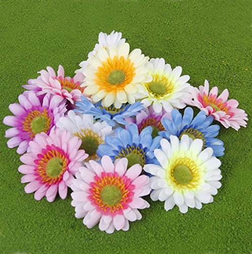 10pz Margherita Artificiale Fiori Gerbera In Seta Per Festa Fai Da Te - Bianco