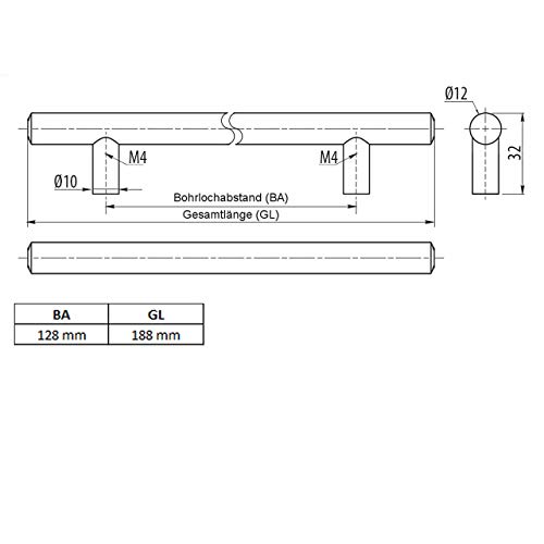 10tlg. Stangengriffset BA 128 millimetri in acciaio inossidabile genuino
