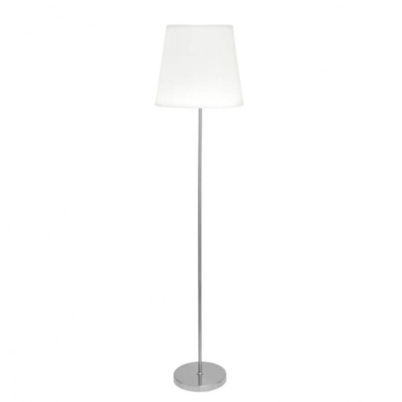 Lampada da terra serie MALDIVE in colore nichel/bianco. Le sue dimensioni sono 175X40X40 cm. Realizzato in materiale tessile e metallo. Portalampada E27.