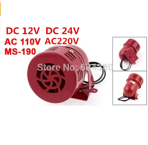 AC 110V AC 220V DC12V DC24V IP40 2A Red Mini Metal Motor Siren Industrial Fire Alarm Sound Electrical Guard Against Theft MS-190