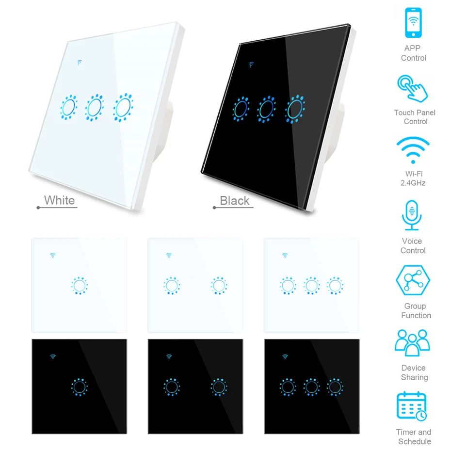 110V 220V Tuya WiFi Smart Light Switch with Glass Panel Waterproof Touch Sensor Wall Switch Work with Alexa Google Home APP