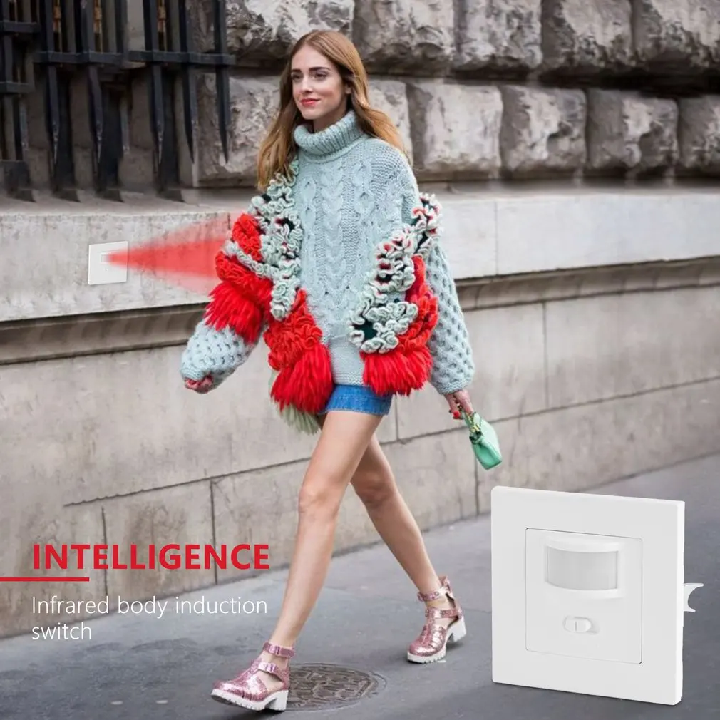 AC 110V-240V Infrared PIR Motion Sensor Recessed Wall Lamp Light Bulb Switch PVC Material Wall-mounted