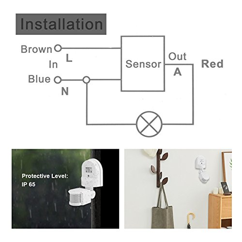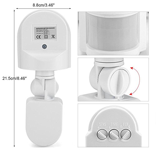 110V-240V Regolabile PIR Sensore di Movimento del corpo a infrarossi Rivelatore Sensore di movimento Interruttore a lampadina Interruttore a bulbo con viti di installazione(1)