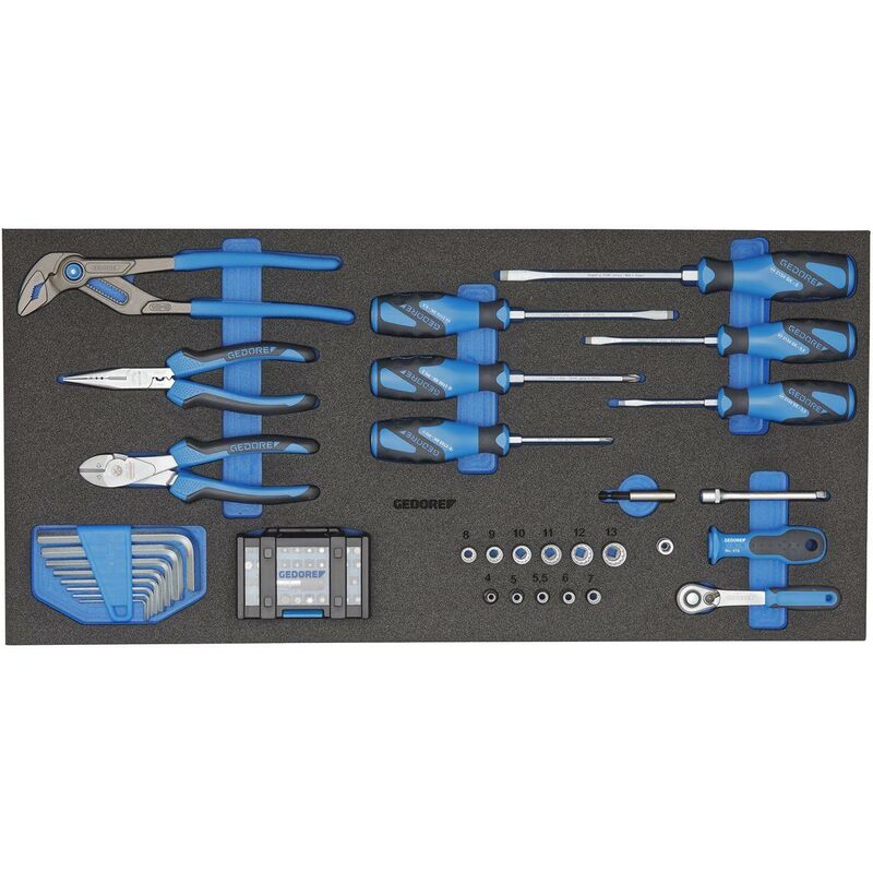 Ideali per lavori di manutenzione e montaggio sia maggiori che minori, Idonei per l'industria, l'artigianato, il settore automobilistico ed amatori esigenti, L'assortimento GEDORE appropriato per apprendisti, maestri o amatori a seconda delle esigenze Contenuto per set PH 42-88 Elenco dei pezzi (testo) 3K-Schraubendreher Schlitz No. 2154SK 3,5 5,5 6,5 8 mm 3K-Schraubendreher Kreuzschlitz No. 2160SK PH 1 2 Winkelschraubendreher-Satz No. PH 42-88, 6kt SW 2 2,5 3 4 5 6 8 10 mm Universalzange No. 142 10 TL, 10 Mehrfachzange No. 8133-200 JC, 200 mm Kraft-Seitenschneider No. 8316-180 JC, 180 mm 1/4 Bit-Box No. 666-032-A, 32tlg Bit-Adapter No. 620,1/4 6kt x 1/4 4kt 1/4 Multigriff No. 676 1/4 Bit-Halter No. 699, 6kt 1/4 Steckschlüsseleinsatz No. D 20, SW 4 5 5,5 6 7 8 9 10 11 12 13 MM 1/4 Umaschaltknarre No. 2093 U-20 1/4 Kardanverlängerung No. 2090 KR-4, 97 mm Paese di origine Europäische Union Conservazione Check-Tool-Modul für WORKMO oder L-BOXX 136 Larghezza totale [mm] 660 mm Lunghezza