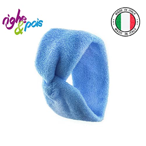 1110 - Fascia per capelli spugna di cotone made in Italy cm 7 con nodo centrale (Azzurro) - fascia trucco per capelli elasticizzata made in Italy