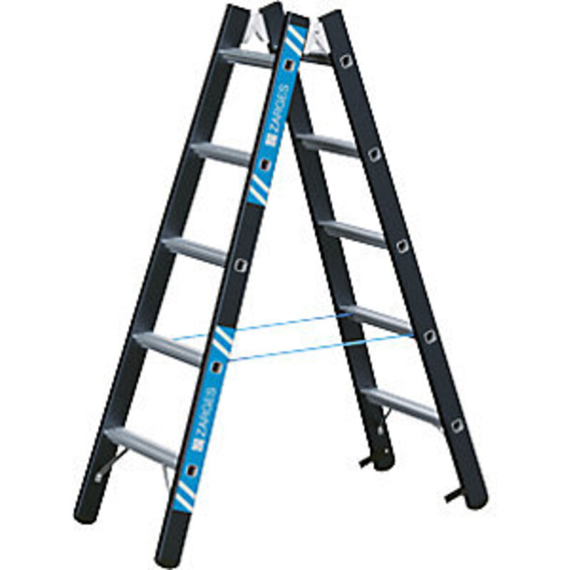 Scala a libro per carichi pesanti, salita su ambo i lati, 2 x 5 pioli. Fornitura = montato. Salita = su due lati. Versione da salita = pioli. Numero pioli = 2x5 pz. Materiale telaio = alluminio, anodizzato. Materiale gradini = alluminio, mandorlato. Profondità gradini = 60 mm. Peso = 8 kg. Caratteristiche = pieghevole. Portata = 250 kg. Caratteristiche scala = sicurezza antidivaricamento grazie a cinghie in perlon ad alta resistenza. Altezza verticale = 1470 mm. Larghezza esterna in basso = 500 mm. Portata elevata, fino a 250 kg. Per impieghi intensivi. 66 % di carico superiore di quello previsto nella norma EN 131. Montanti anodizzati neri. Robusta flangiatura di qualità. Profondità pioli 60 mm con rigatura antiscivolo. Montanti e pioli in profilati d'alluminio estruso. Piedini in plastica intercambiabili. Salita su ambo i lati Massicce cerniere in acciaio. Robusti rinforzi ad angolo. Affidabile sicurezza antidivaricamento grazie a resistenti cinghie in perlon.