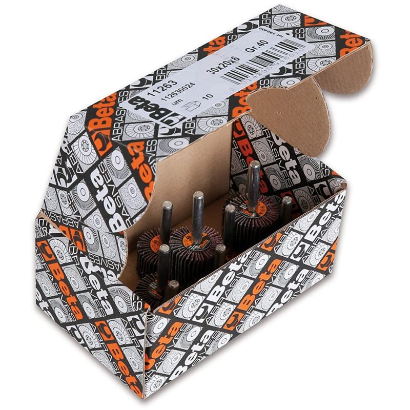 Beta 11263 h20 P40 - Ruote lamellari con gambo con lamelle in tela abrasiva al corindone. Rulli lamellari diametro ruota 30 mm, diametro gambo 6 mm 20-40Size: 20-40