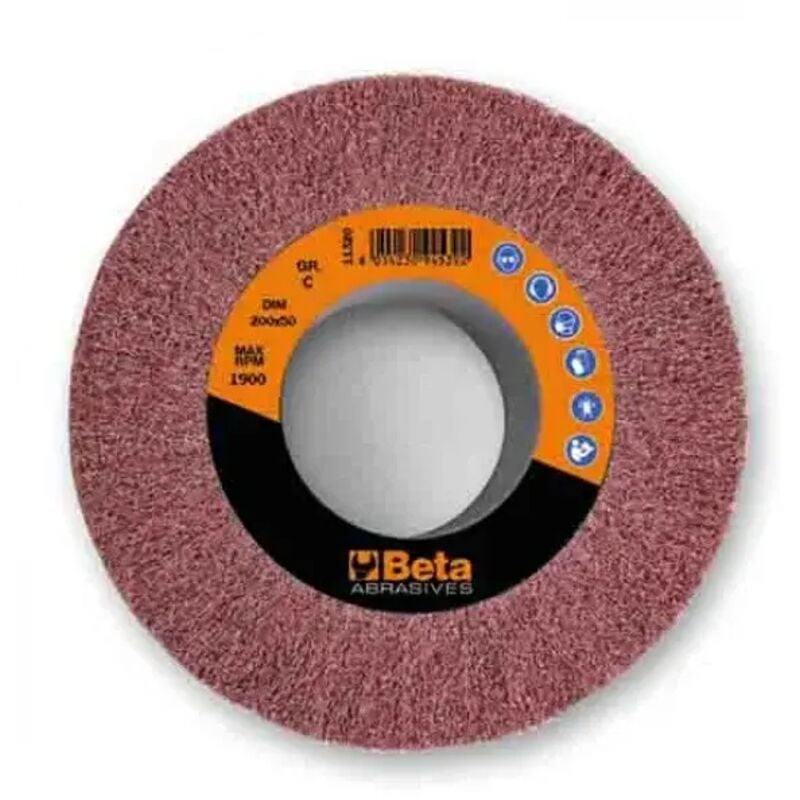 Le ruote lamellari Beta 11320 sono realizzate in tessuto non tessuto abrasivo di Tipologia: Ruota con foro Foro: 76,2 mm Altezza: 50 mm Diametro: 200 mm Impiego: Satinatura ed opacizzazione Utensile correlato: Macchine portatili e fisse Tela: Tessuto non tessuto abrasivo al corindone Utilizzo: Metalli, ceramiche e legno