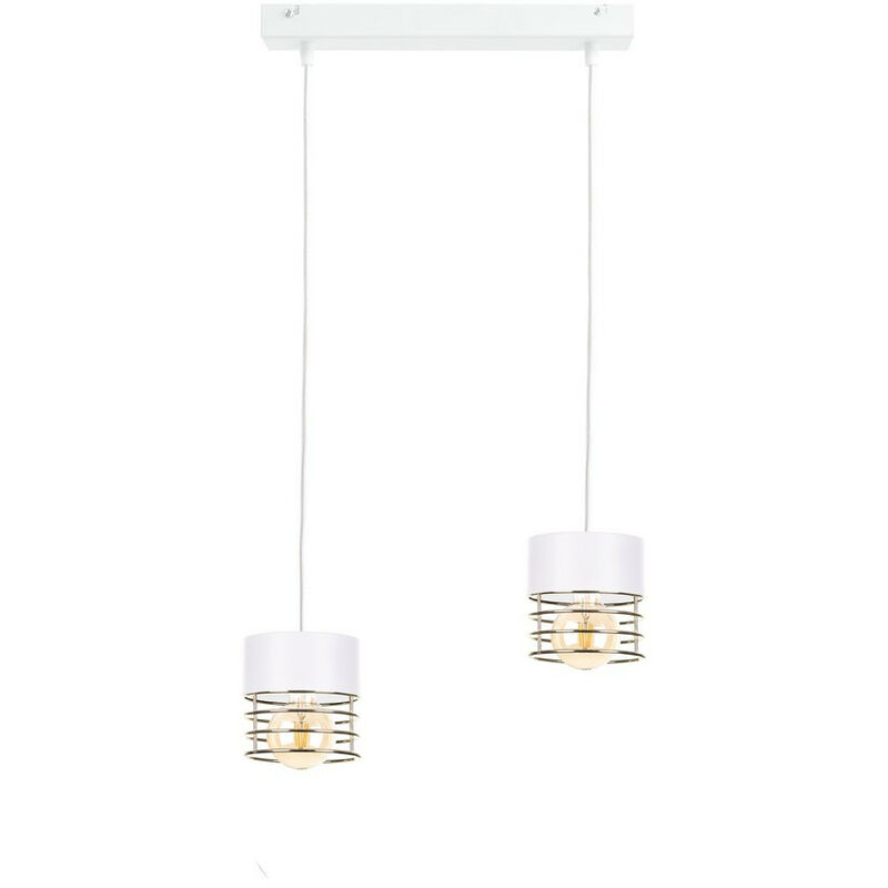 Keter Lighting - 1134 Plafoniera a sospensione Royal Bar bianca, oro, 50 cm, 2x E27 | Finitura: bianco, oro | Altezza: 100 cm | Lunghezza: 50 cm | Larghezza: 12 cm | Tipo di lampada: E27 | N. di lampade: 2 | Lampadina inclusa: no | Dimmerabile: Sì - Sono necessarie lampadine dimmerabili | Potenza (max): 60 W