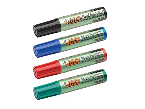 BIC 11401 - Pennarello Onyx Marker 1481, punta smussata, tratto 4-7 mm, indistruttibile, tutti i supporti corpo in metallo assortiti
