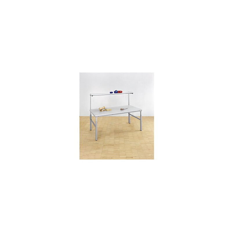 Stazione di lavoro modulare, altezza regolabile manualmente da 650 a 1000 mm, banco portante con mensolina, largh. x prof. 1500 x 500 mm. Fornitura = smontato. Larghezza = 1500 mm. Profondità = 500 mm. Colore piano = bianco. Colore telaio = grigio orizzonte RAL 7045. Altezza di lavoro = 650 - 1000 mm. Versione telaio = tubo a sezione quadra 45x45 mm. Spessore piano = 22 mm. Portata = 400 kg. Tipo di regolazione dell'altezza = manuale. Tipo di piano = melammina. Materiale telaio = acciaio, verniciato a polvere. Versione = tavolo da lavoro con mensolina. Tipo di prodotto = postazioni di lavoro modulari. Di serie, con altezza regolabile manualmente da 650 a 1000 mm, messa in piano inclusa. Sistema flessibile composto da tavoli, accessori, carrelli di servizio e carrelli con cassetti. Telaio in tubi d'acciaio, 45 x 45 mm, verniciati a polvere in grigio orizzonte RAL 7045. Con sistema di regolazione altezza in profilati d'alluminio, 40 x 40 mm. Piano di lavoro, spesso 22 mm, con