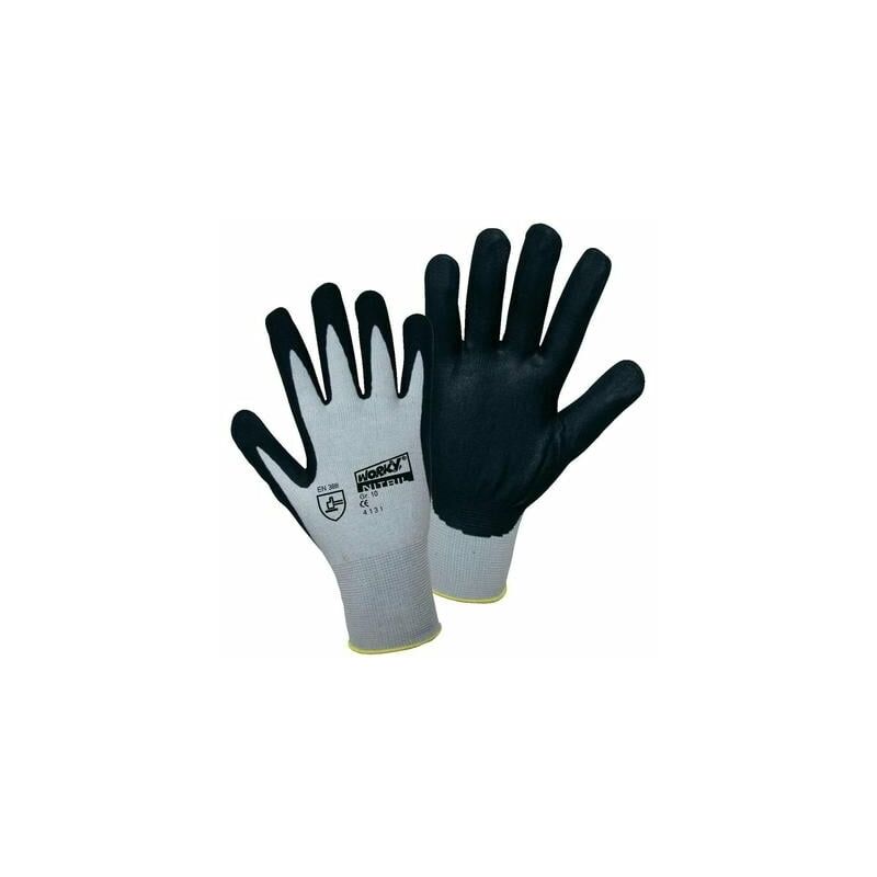 Il rivestimento in microschiuma di nitrile nero sul palmo offre un'ottima e sicura presa, sia bagnata che asciutta e produce l'effetto ''none sticky'', ovvero un effetto non appiccicoso con i materiali grazie al rivestimento in microschiuma di nitrile. Per esempio.: non si attacca ai nastri da imballaggio, il rivestimento traspirante mantiene i prodotti asciutti freschi e asciutti. Autorizzazioni, norme: EN 388 RISCHI MECCANICI 4131 Classe di protezione: CAT II Colore: nero, grigio Materiale: 100% nylon con rivestimento in nitrile Taglia: 7 (S)
