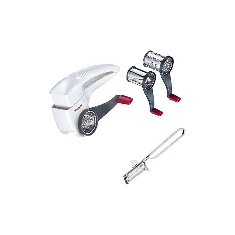 Westmark 117222E7 Grattugia a Tamburo Trio + pelapatate »Famos Inossidabile Acciaio, Bianco/Antracite/Argento