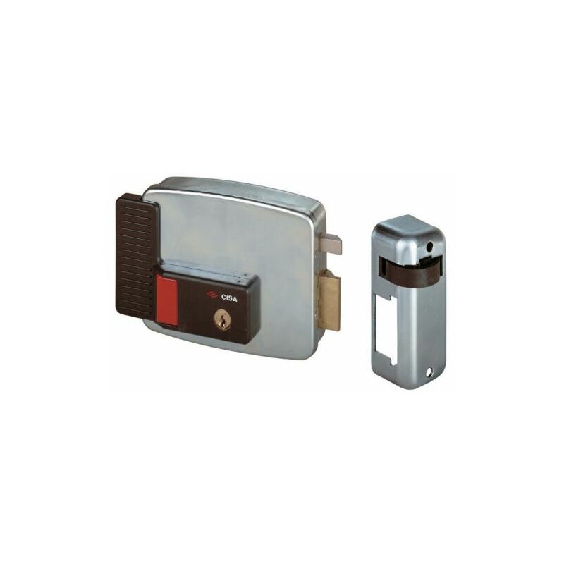 Art. 11731 pulsante e cilindro interno ed esterno fisso, scrocco autobloccante. Completa di contropiastra e tettoia. Mano DX Scatola mm 128x106 Entrata 60 mm