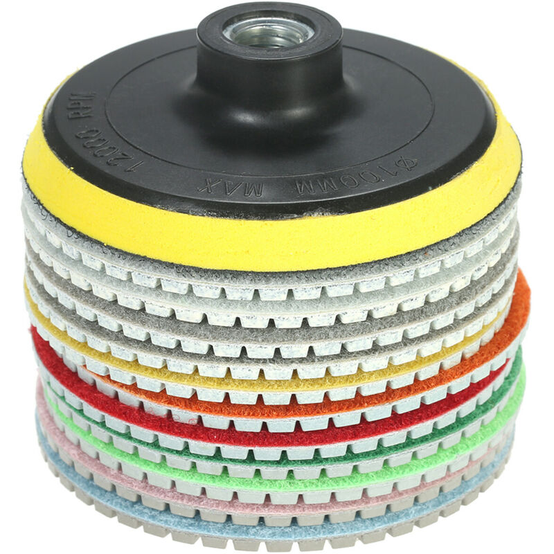 Questo set include 11 tamponi per lucidatura diamantati bagnati e 1 platorello. È adatto per lucidare granito, cemento, marmo, pietra, piastrelle, ecc. Specifiche: < br />Colore: come mostrato Materiale: polvere diamantata impregnata di resina Grana: grana 2 * 30/50, 1 * 100/200/400/800/1500 /3000/6000 Grana Diametro esterno: 100 mm / 4" Diametro interno: 15 mm / 0,6" Spessore: Circa. 3 mm Dimensioni confezione: 10 * 10 * 7,8 cm / 3,94 * 3,94 * 3,07 pollici Peso confezione: 429 g / 15,13 once Elenco dei pacchetti: 11 * Tamponi per lucidatura bagnati 1 * Platorello < br /> Nota: 1. Si prega di consentire un errore di 1-3 mm dovuto alla misurazione manuale. 2. A causa della differenza tra diversi monitor, l'immagine potrebbe non riflettere il colore effettivo dell'articolo, prevalgono i pls in natura.