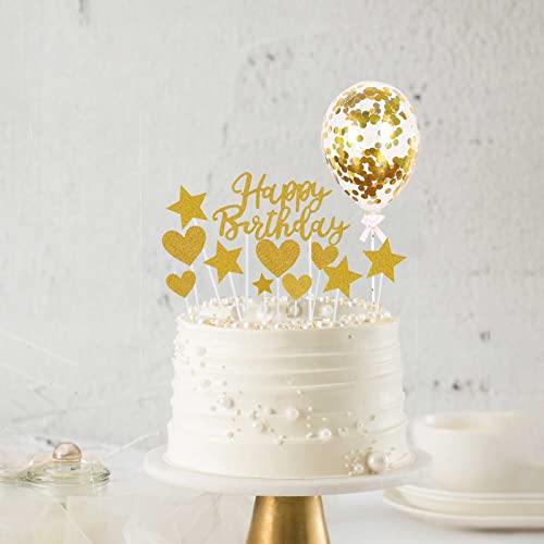 11PCS Toppers Torta di Compleanno Probuk Riutilizzabile Glitter Oro Cake Topper Bandiera per Torta con Cuore Stella Cake Topper&Palloncini Coriandoli, Decorazioni per Feste Compleanno/Festa di Natale
