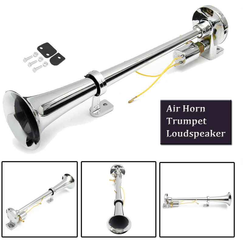 Contenuto della confezione: 1 tromba d'aria 1 kit di accessori (2 guarnizioni in gomma, 4 viti, 3 dadi, 3 rondelle metalliche) Specifiche: Materiale: acciaio inossidabile (superficie cromata) Dimensioni della confezione: circa 45 x 11 x 9,5 cm Dimensioni del prodotto: circa 44,2 x 9,5 x 9,5 cm Diametro del corno: circa 95 mm Suono: ≦ 150dB Tensione di lavoro: DC12-24V Corrente di lavoro: 2.0-3.0A Veicoli applicabili: auto/camion con pompa ad aria Caratteristica: 1 . Buona qualità del suono e frequenza estremamente stabile 2. Lunga durata, stabile e affidabile 3. Buona qualità del suono, non soggetto a vibrazioni, basse temperature, alte temperature e tensione modifiche 4. Operazione di installazione semplice