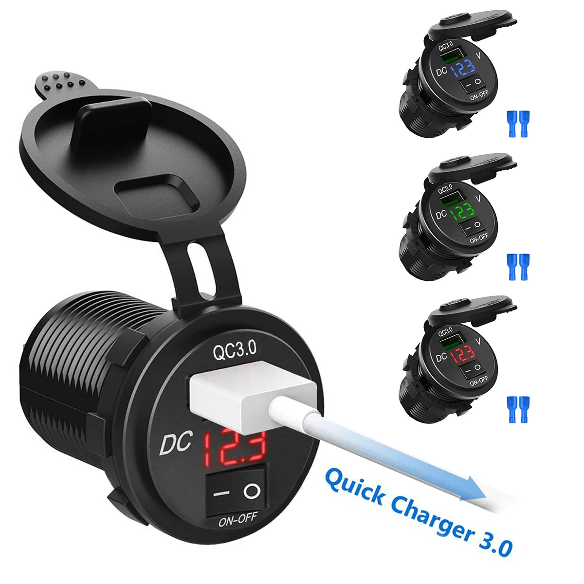 12-24V Quick Charge 3.0 USB Charger 5V 3.1A LED Display Voltmeter Car QC3.0 Quick Charge Charger for Car Boat Motorcycle