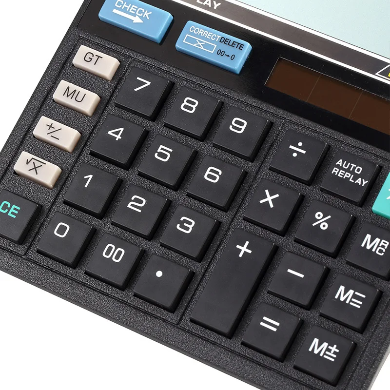 12-Digit Display Black Scientific Calculator Dual Power Large Display Office Desktop Solar Battery Calculator For Students