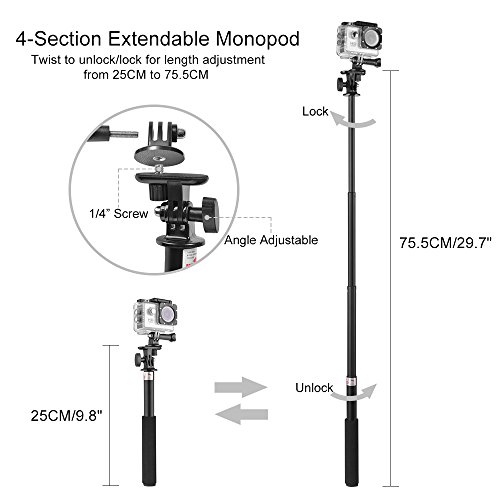 MONOPOD & MINI TRIPOD: montare il monopiede estensibile a 4 sezioni sul mini tripode, utilizzare l'otturatore a distanza Bluetooth per scattare foto in proprio. Conveniente per la cattura di ritratti familiari, scattare foto e inquadrare video durante il viaggio.