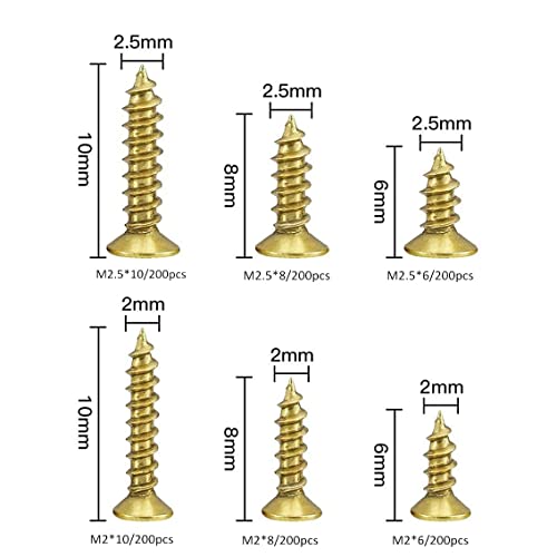 Confezione da 1200 pezzi: 3 misure di M2 e 3 misure di viti autofilettanti M2.5. Sono M2 x 6 mm, M2 x 8 mm, M2 x 10 mm;
