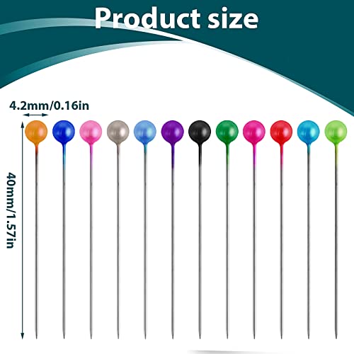 1200 spilli colorati con testa di 40 mm di lunghezza, spilli colorati in acciaio inox, con testa rotonda multicolore, per fai da te, cucito, cucito, artigianato, gioielli, decorazione