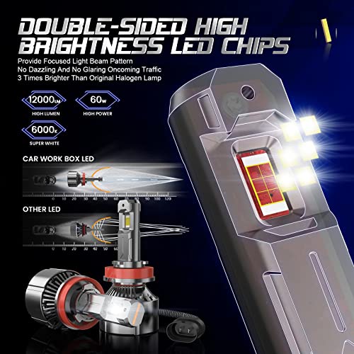 12000LM H11 CSP LED - Questo h11 ha condotto le lampadine del faro che utilizzano chip LED CSP a doppia faccia, il flusso luminoso raggiunge i 6000lm per lampadina (12000lm per coppia), che producono una luce bianca allo xeno 6000k, 3 volte più luminosa delle lampadine alogene standard