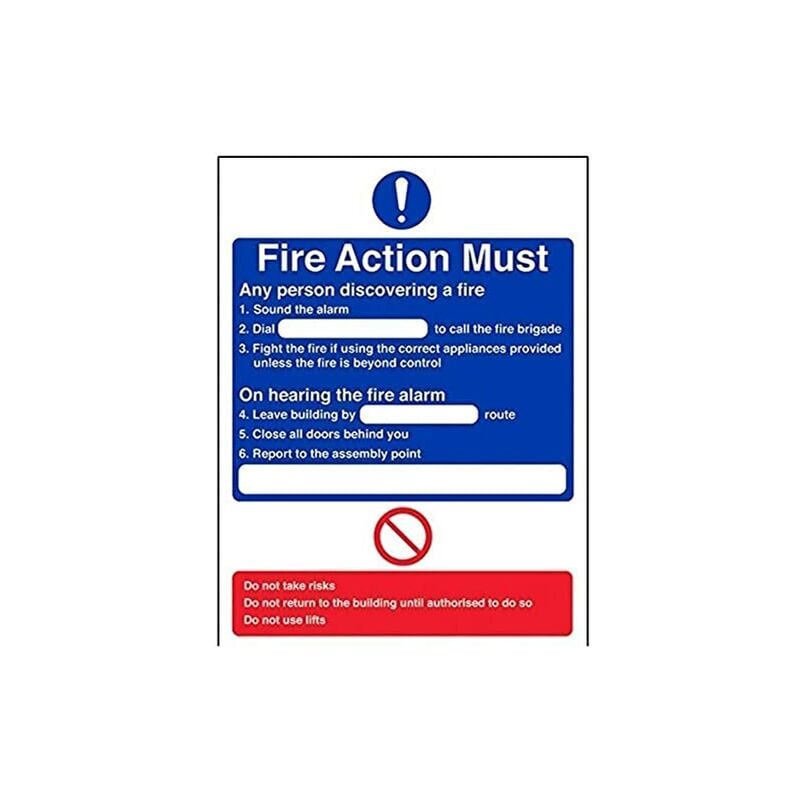 V Safety 12001 AN-R Fire Action, Azione generale Fire quadrante, Plastica rigida, verticale, 150 mm x 200 mm, colore: blu/rosso 150mm x 200mm