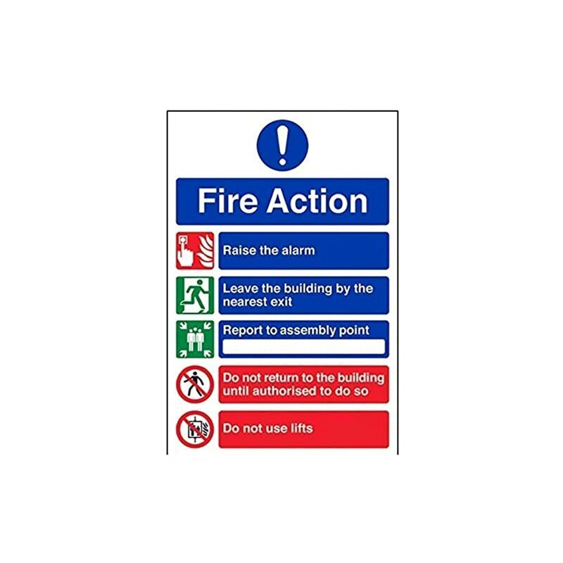 V Safety 12005 au-s Fire Action Sign, Fire Action generale 5 Messaggio, Autoadesivo, ritratto, 200 x 300 mm, Nero/Blu/Verde/Rosso 200mm x 300mm
