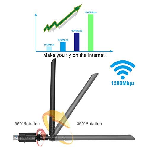1200Mbit/s USB Wifi Adapter,AC Dualband wireless Adapter (2.4G/300Mbps+5.8G/867Mbps),YOTECE Wlan Stick mit Antennenbuchse und abnehmbarer Antenne für Win 10/8.1/8/7/XP/Vista (32/64bits) MAC OS