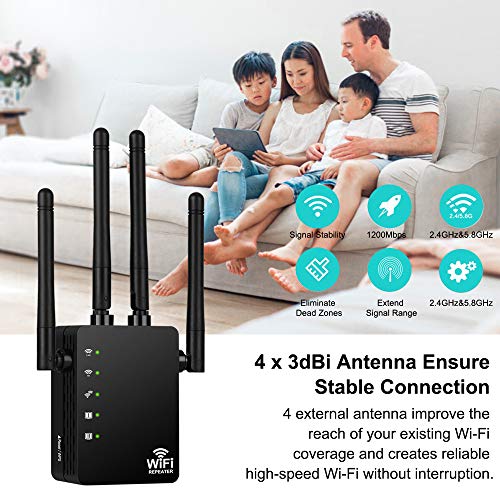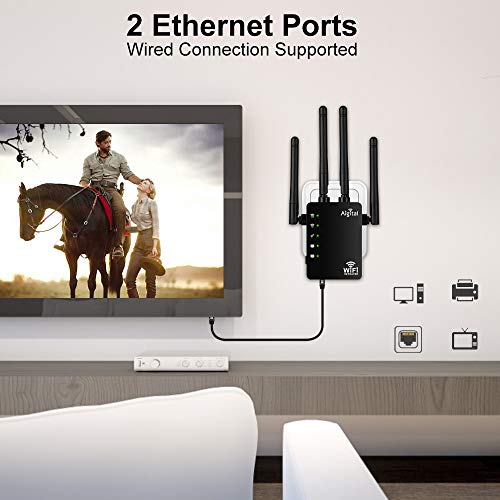 1200Mbps Ripetitore WiFi Potente, Aigital Amplificatore WiFi Extender 5GHz Dual Band con 2 Porta LAN, Compatibile con Modem Fibra e ADSL