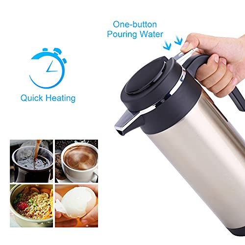 1200ml 24V Auto Camion Scaldabagno Elettrico Portatile Acciaio Inossidabile Bollitori Elettrici Bollitura Rapida per Tè Caffè Latte con Presa Accendisigari per Viaggio Picnic Campeggio Pesca
