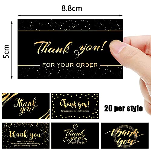 120Pcs Biglietti Di Ringraziamento 6 Modelli Tipi Grazie Carte Carte Di Grazie Per Il Tuo Ordine Apprezzamento Del Cliente Biglietto Di Auguri Di Ringraziamento Per Matrimonio Laurea(Nero Oro)