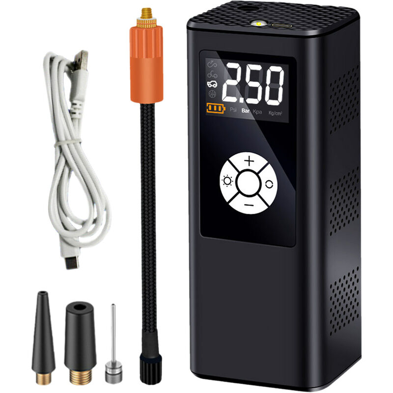 Descrizione: Il compressore d'aria portatile da 120 CV è dotato di 3 adattatori per ugelli perfettamente progettati per una varietà di articoli da gonfiare, come pneumatici per biciclette, pneumatici per auto per uso domestico, pneumatici per moto, pneumatici per biciclette elettriche, palloni, anelli da nuoto, giocattoli gonfiabili e altri gonfiabili. Caratteristiche: [Luce LED] Il compressore d'aria portatile può essere utilizzato come torcia come dispositivo di illuminazione di emergenza al buio. [4 modalità] Un tasto per passare tra quattro modalità, tra cui modalità auto, modalità moto, modalità bicicletta e modalità palla. [Sicuro da usare] Preimpostare la pressione dei pneumatici, quindi fare clic su Avvia, la macchina si fermerà automaticamente quando il pneumatico è pieno d'aria. [Grande capacità] Il compressore d'aria ha una batteria al litio ricaricabile incorporata da 4000 mAh. È possibile caricare il compressore d'aria tramite un cavo USB. [Misura pressione] Collega