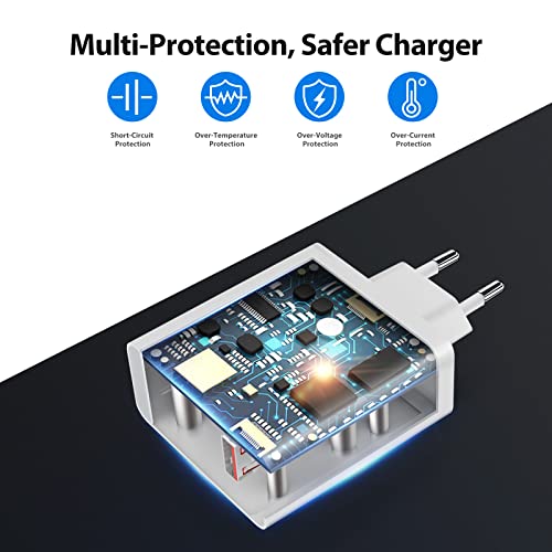 【Sicuro e affidabile】Con il chip intelligente all'interno, il caricatore da parete USB si adatta automaticamente alla corrente di cui il dispositivo ha bisogno. Protezione da sovraccarico e sovracorrente, la carica si interrompe quando la batteria è piena. Il che può darvi un'esperienza di garanzia di sicurezza. Notare: a causa del lotto di materie prime, il colore del connettore del caricabatterie USB ricevuto può essere arancione o bianco, NON influenzare l'effetto effettivo di ricarica.