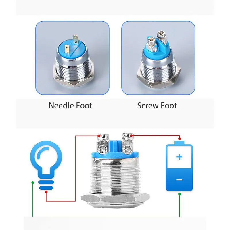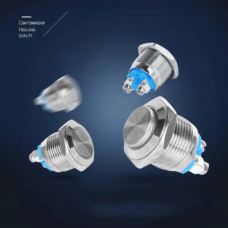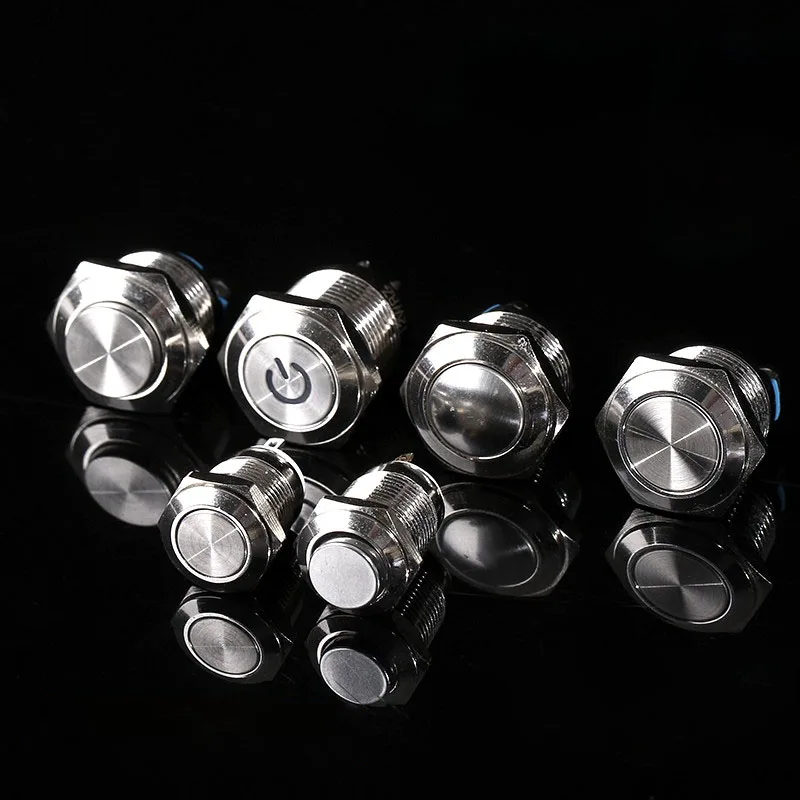 12/16/19/22mm Reset Momentary Metal push button switch Copper plated nickel Silver car horn door control switch screw foot