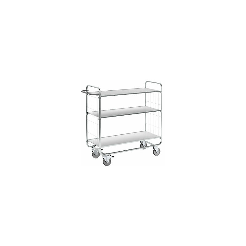 Carrello a ripiani zincato a fuoco, 3 ripiani, lungh. x largh. x alt. 1195 x 470 x 1120 mm, 4 rotelle, 2 con fermo. Fornitura = smontato. Portata = 250 kg. Lunghezza superficie di carico = 1000 mm. Larghezza superficie di carico = 425 mm. Lunghezza = 1195 mm. Larghezza = 470 mm. Altezza = 1120 mm. Numero piani = 3 pz. Dotazione ruote = 4 rotelle pivottanti, di cui 2 con fermi. Diametro ruote = 125 mm. Colore telaio = zincatura. Materiale telaio = zincato. Materiale superficie di carico = piano in fibra, con verniciatura melamminica. 4 rotelle pivottanti, Ø 125 mm. Elevata protezione anticorrosione grazie alla zincatura, ripiani in fibra spessi 12 mm con verniciatura melamminica. Ripiani regolabili in altezza - si adattano in base alle esigenze. Trasporto ergonomico e flessibile fino al luogo di utilizzo grazie all'impugnatura regolabile in altezza e alle rotelle pivottanti. Ø ruote 125 mm. Portata 250 kg.