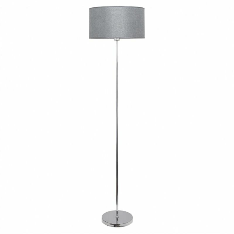 Lampada da terra serie Axel in argento. Questa lampada da terra fa parte di una famiglia molto completa di sospensioni di varie dimensioni, lampade da tavolo e da parete. E' realizzato in metallo color cromo e paralume in tessuto color argento. Le sue dimensioni sono 165x40x40 cm e il suo peso netto 415 g. Il portalampada è E27.