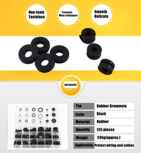 125PCS Firewall Grommet kit, 18 dimensioni anello gommino anello occhiello guarnizione, filo guarnizione anello di tenuta kit assortimento, con custodia