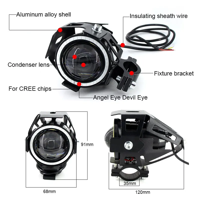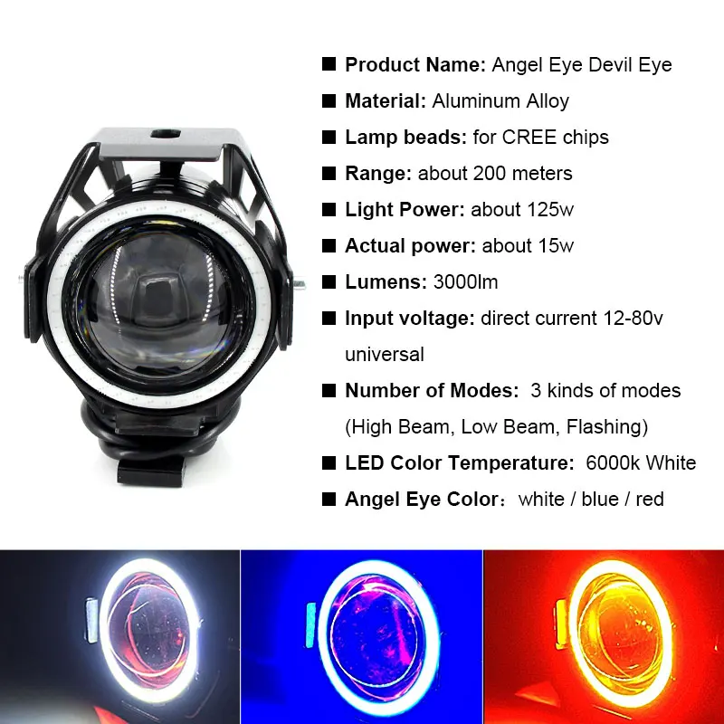 125W Motorcycle Headlight Devil Eye 3000LM moto spotlight U7 LED Driving Fog Spot Head Light Decorative Lamp