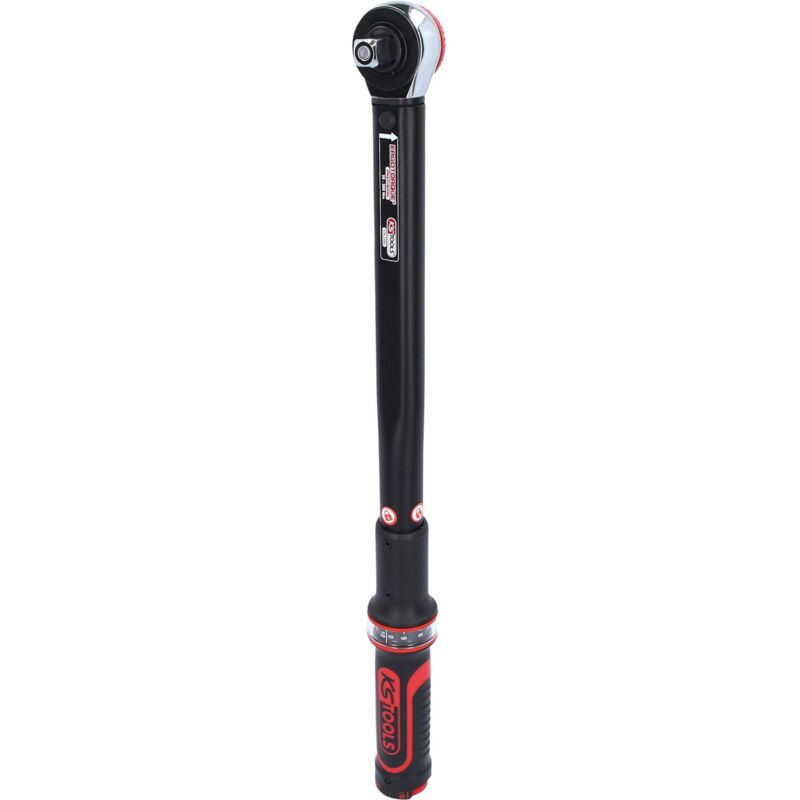 Tolleranza: Ripetizione precisa per almeno 5.000 serraggi Per il serraggio controllato destro e sinistro Con rotella sul quadro di innesto per una presa sicura Cambiamento di direzione tramite il posizionamento dell'attacco quadro Scala doppia con suddivisione in Nm e lbf•ft per una regolazione precisa Scala micrometrica con suddivisione in Nm per una regolazione precisa Finestrella grande con lente d'ingrandimento per migliorare la leggibilità Segnale acustico al raggiungimento del valore impostato Robusto meccanismo a cricchetto a 30 denti Regolazione della coppia rapida e sicura mediante il cursore con rotella Pulsante di bloccaggio sicuro sull'impugnatura Con sistema di sgancio rapido tramite pulsante sulla testa a cricco Impugnatura bicomponente ergonomica e maneggevole con parti morbide Quadro di manovra DIN 3120 / ISO 1174 con arresto a sfera Numero di serie individuale per una chiara identificazione del prodotto Comprensivo di certificato di conformità di calibrazione a norma